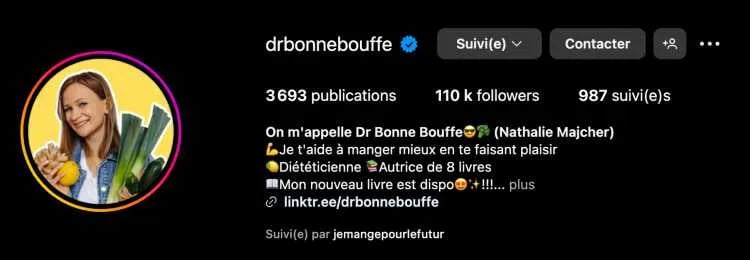 Nahalie Majcher, alias Dr Bonne Bouffe, est diététicienne et auteure de livres. Elles vous aide à mieux manger en se faisant plaisir.